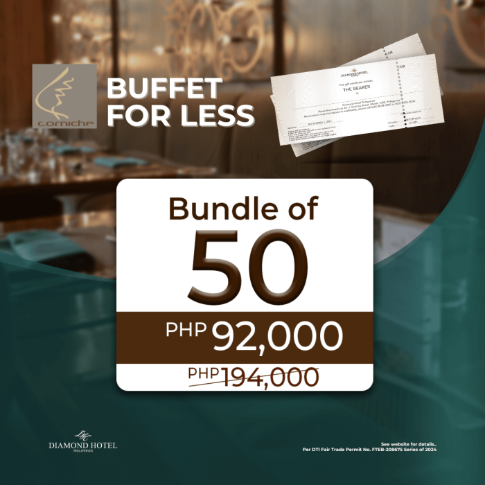 Bundle of 50 Corniche Lunch or Dinner Buffet Gift Certificate at Php 92,000