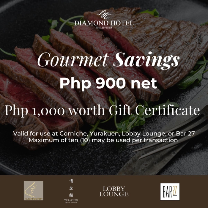 Gourmet Savings: Php 1,000 worth Gift Certificate at Php 900 net