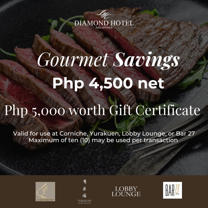 Gourmet Savings: Php 5,000 worth Gift Certificate at Php 4,500 net