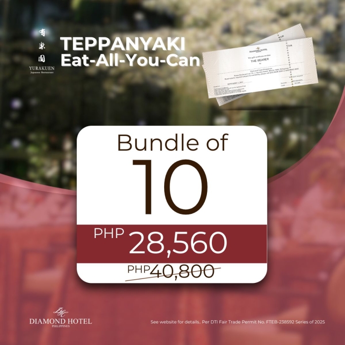 Bundle of 10 Yurakuen Teppanyaki Eat-All-You-Can Gift Certificate at Php 28,560 net