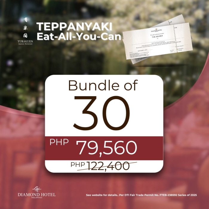Bundle of 30 Yurakuen Teppanyaki Eat-All-You-Can Gift Certificate at Php 79,560 net