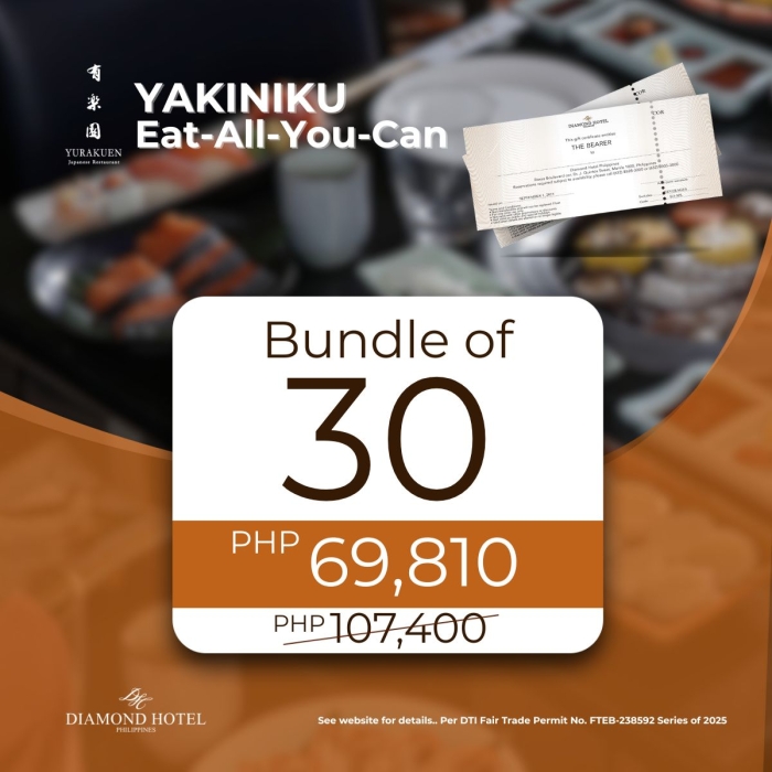 Bundle of 30 Yurakuen Yakiniku Eat-All-You-Can Gift Certificate at Php 69,810 net